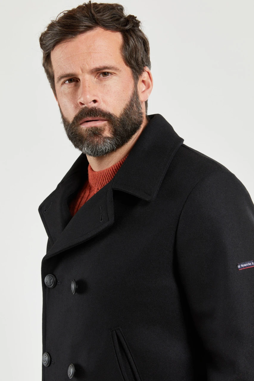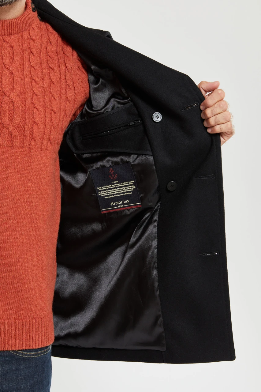 Robuster und hochwertiger Caban für Herren in Amor Lux Qualität. Das Obermaterial besteht aus dicht gewalktem Tuch, das Sie besonders an kalten Tagen besonders gut schützt. Seitlich befinden sich zwei Schubtaschen. Geschlossen wird der Caban durch die traditionellen drei Knopfpaare. Zusätzlich verfügt die Jacke über einen Reverskragen. Caban bezeichnet eine traditionell bei der Marine und der Seefischerei gebräuchliche Wolljacke. Ursprünglich wurde das Kleidungsstück von den Seemännern selbst hergestellt, die ihre Jacken mit Teer, Talg und Terpentin selbst imprägniert haben. In Deutschland wurde die Jacke Ende des 19. Jahrhunderts von der Kieler Schneiderei Berger & Colani für die Kaiserliche Marine gefertigt und daher auch Colani, Collani oder Kulani genannt.Farbe: