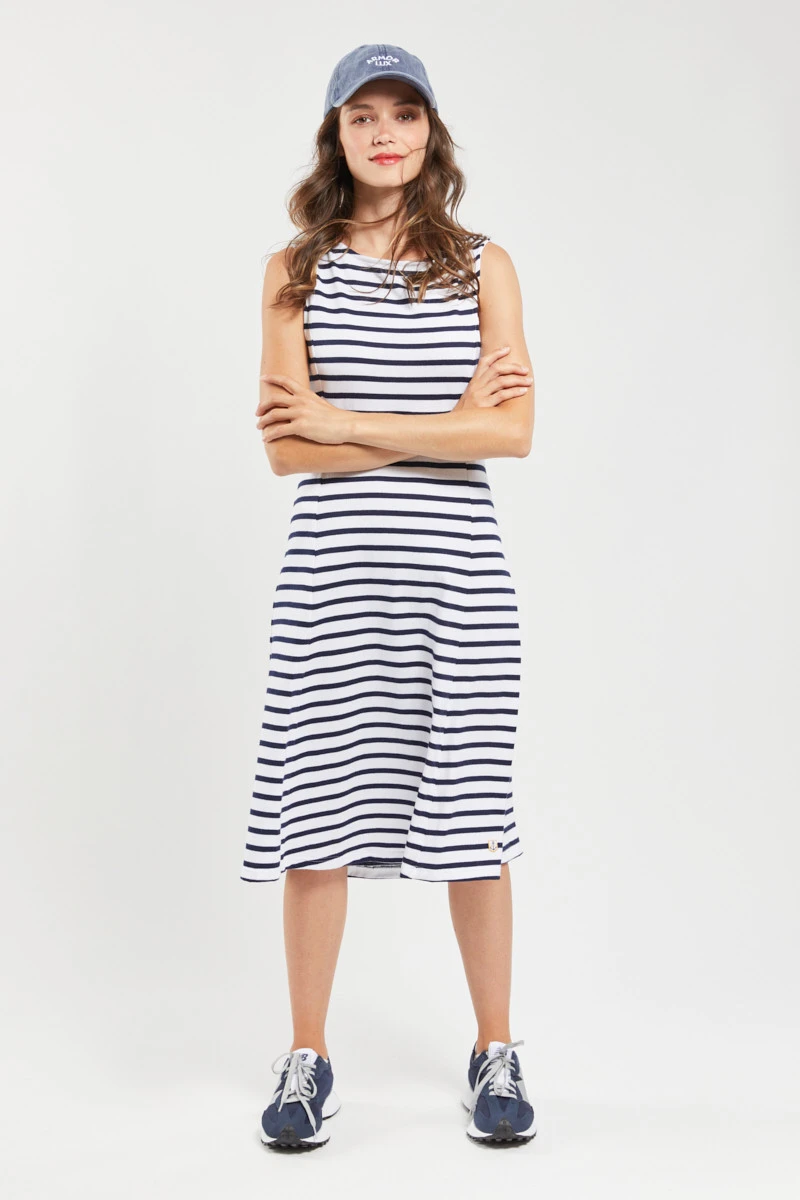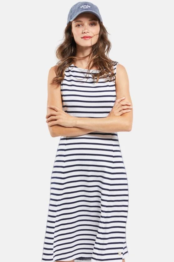 Armor-Lux Armor Lux Damen Kleid Gestreift Robe Sans Manche Weiß Blau Gots