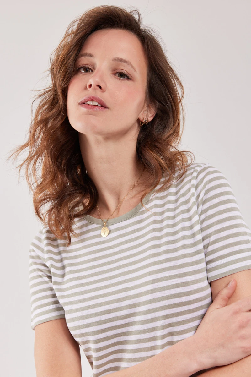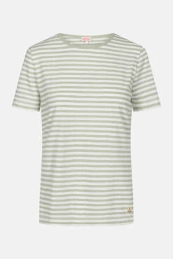 Leichtes Sommer T-Shirt mit Leinenanteil und zarten Hellgrünen Streifen von Armor Lux.Eigenschaften: