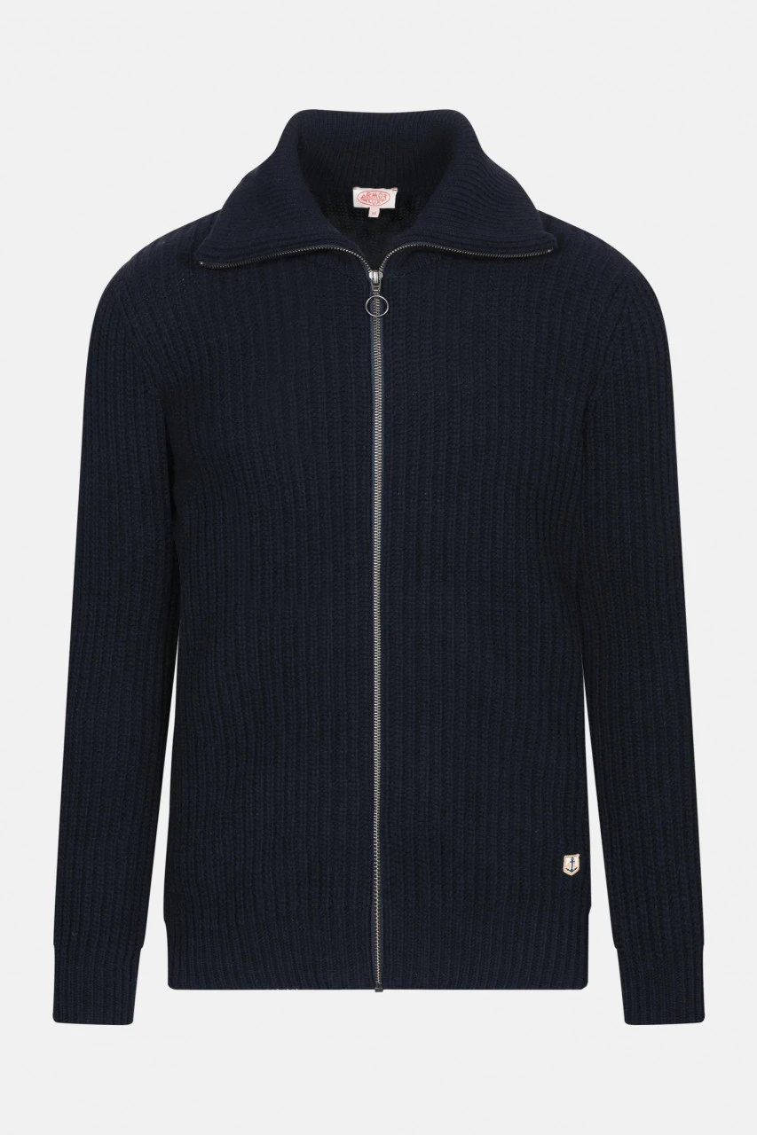 Elegante Strickjacke von Armor Lux mit durchgehendem Reißverschluss, zwei seitlichen Taschen und Troyer-Kragen.Eigenschaften: