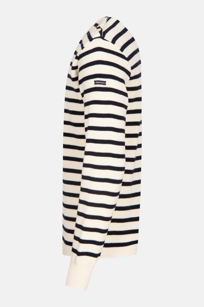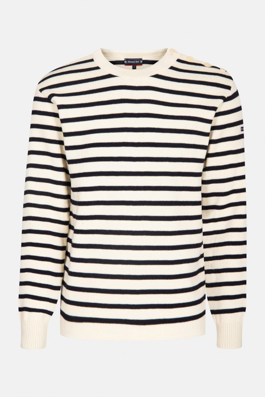 Diesen traditionell gestreiften Marine-Pullover mit Schulter-Knöpfen erhalten Sie hier in einzigartiger Qualität der Firma Armor Lux.Farbe: