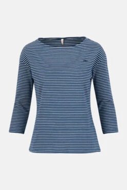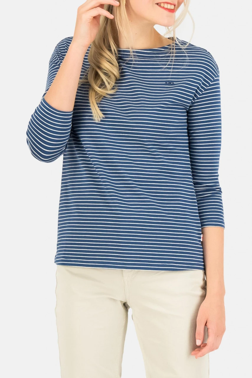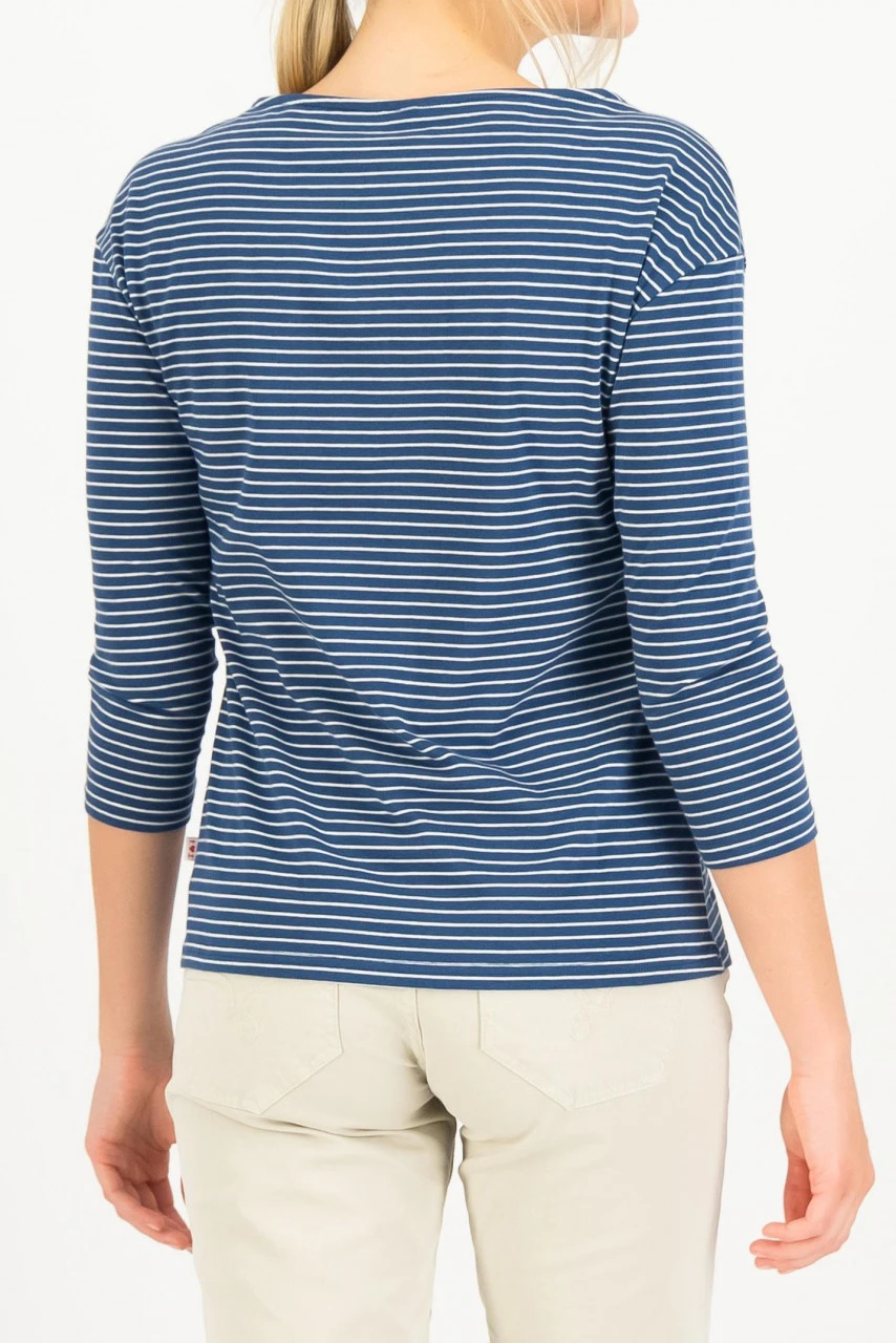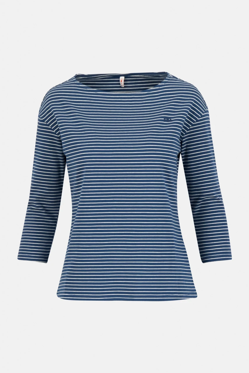 Maritim gestreiftes Dreiviertelarm-Shirt von blutsgeschwister mit U-Boot-Ausschnitt.Nachhaltigkeit: