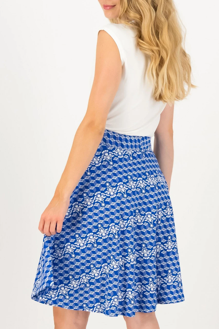 Schicker blau-weiß-gemusterter Sommerrock von Blutsgeschwister.