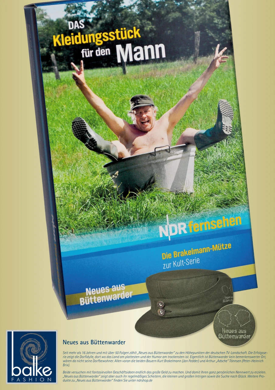 Seit mehr als 16 Jahren und mit über 50 Folgen zählt Neues aus Büttenwarder zu den Höhepunkten der deutschen TV-Landschaft. Die Brakelmann-Mütze ist ein Muss für jeden Fan der Kult-Serie aus dem hohen Norden.