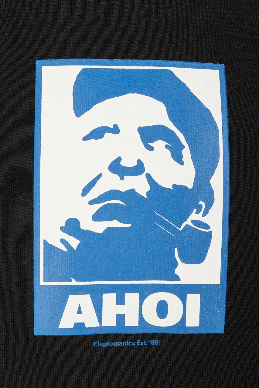 Der coole Print-Hoody in Schwarz von Cleptomanicx ist ein echter Klassiker! Neben dem Ahoi-Schriftzug ziert ein echter Seebär mit Pfeife diesen Kapuzenpullover.Nachhaltigkeit: