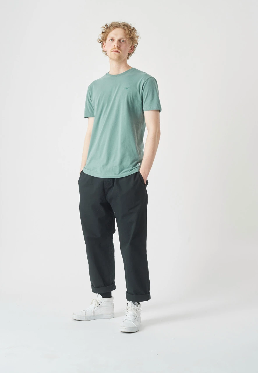 Hellgrünes T-Shirt für Herren mit der klassische Möwen-Silhouette von Cleptomanicx als Stickerei.Nachhaltigkeit:
