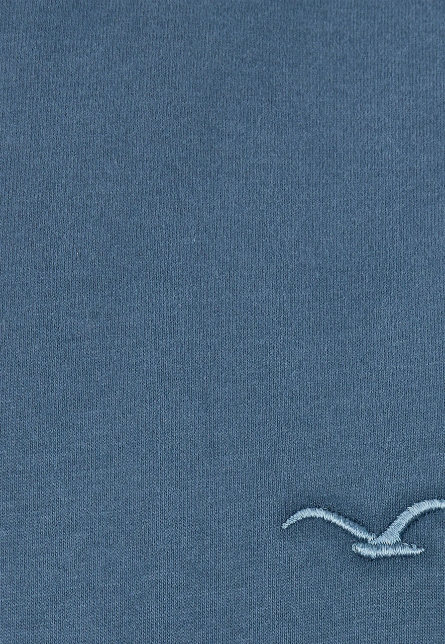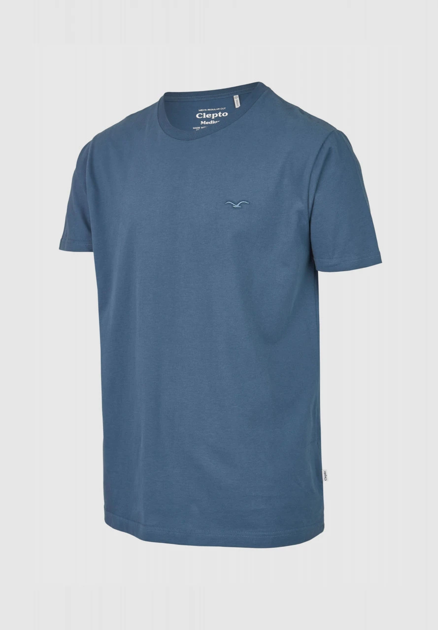 Blaues T-Shirt für Herren mit der klassische Möwen-Silhouette von Cleptomanicx als Stickerei.Nachhaltigkeit: