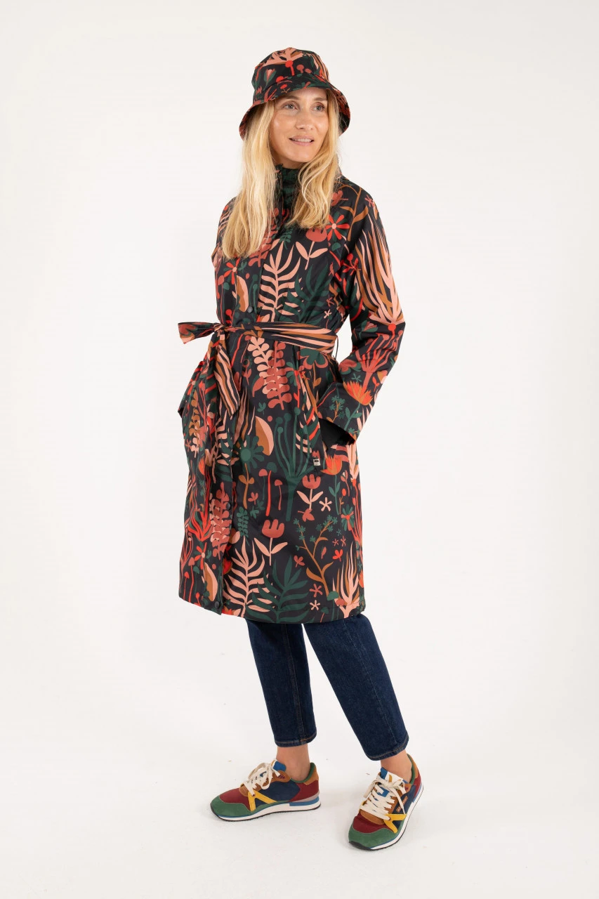 Danefae Danelisabeth Raincoat Damen Langer Regenmantel Black Walkabout Schwarz Bunt Blumen