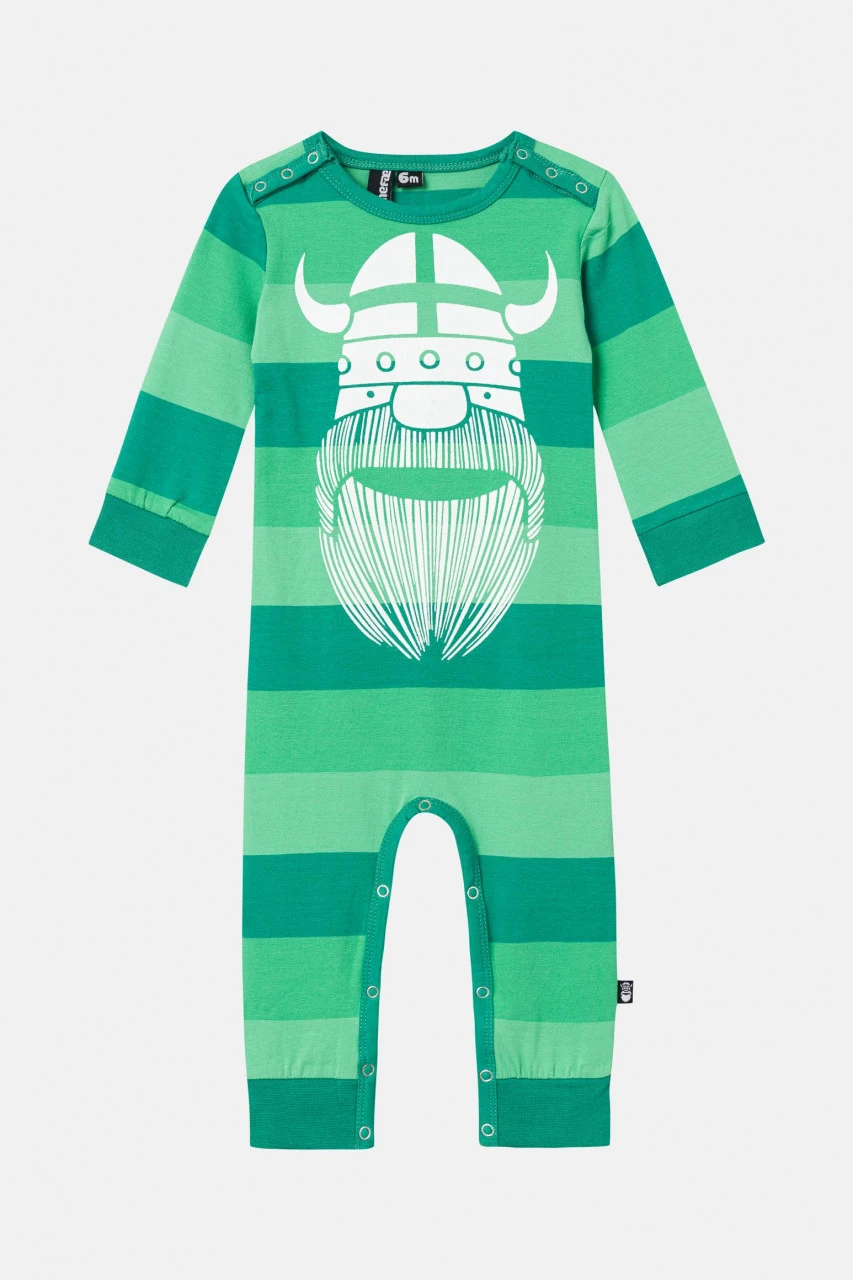 Danefae Wikinger Baby-Body Langarm Grün Danorkan Suit Gestreift