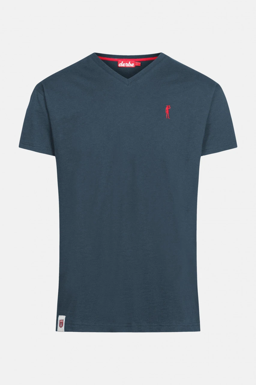 Nur ein dunkelblaues T-Shirt mit V-Ausschnitt? Natürlich nicht! Das eigentliche Highlight ist die kleine Stickerei auf der Brust. Wo bei anderen Marken Polo gespielt wird oder Krokodile sitzen, lässt Derbe lieber Bier trinken. Immer mit Augenzwinkern – Kipp Es!Durch die Verwendung von Flammé-Garn, bekommt das T-Shirt eine leicht meliert wirkende Leinenoptik, die besonders lässig wirkt.Nachhaltigkeit: