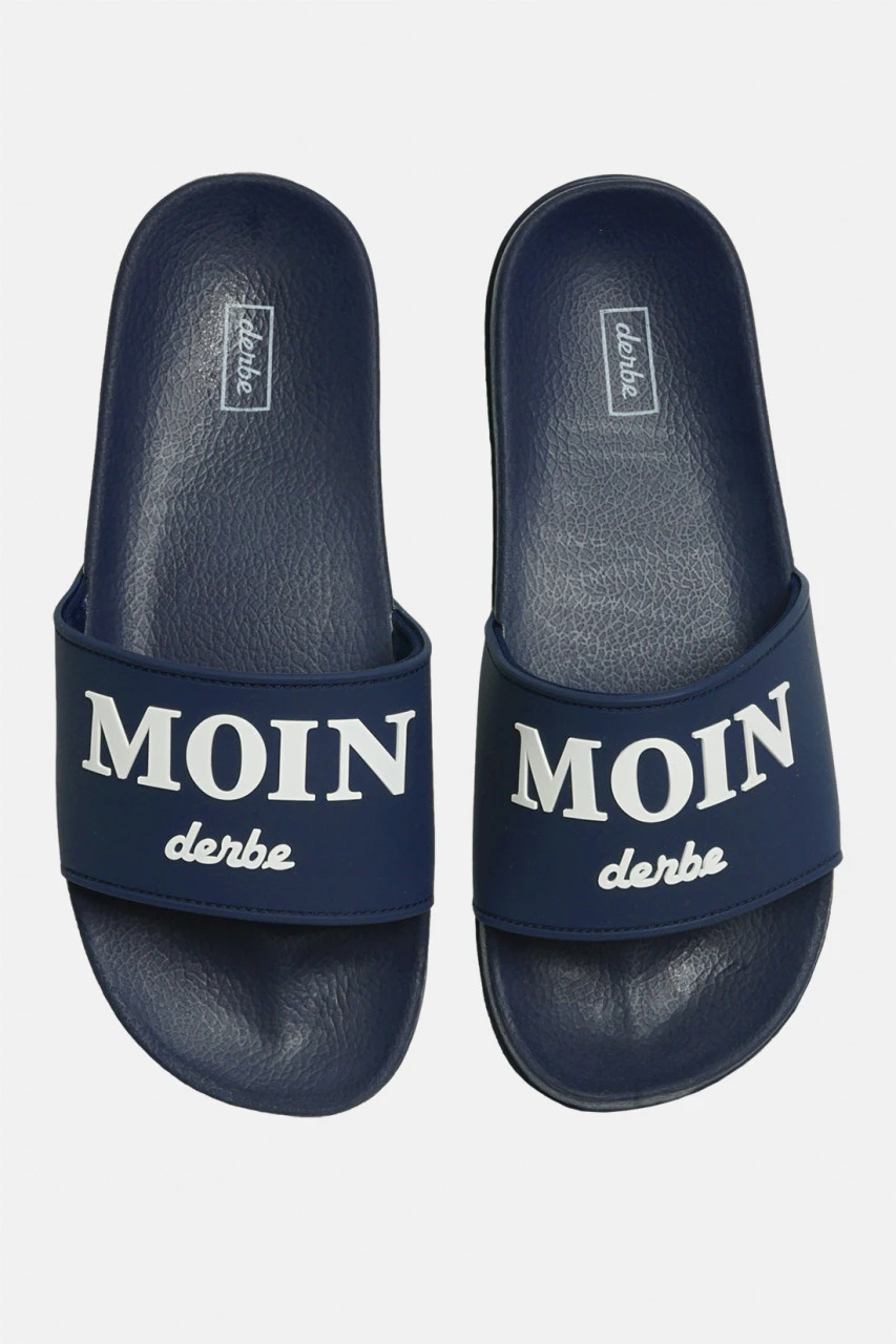 Derbe Buddellette Moin Schlappen Latschen Marine Blau