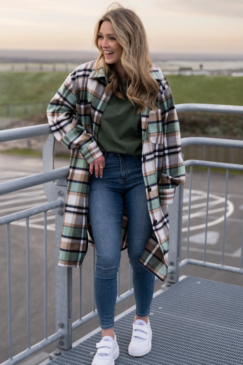 Hemd trifft Jacke: Die karierte Fleece-Langarmbluse mit durchgehender Knopfleiste und Brusttasche von derbe ist eine Hommage an die Overshirts aus der Arbeitsbekleidung. Zugeknöpft kann Checkholm als kuschliges Hemdkleid getragen werden – offen über T-Shirt oder Top als coole Alternative zu einer Strickjacke.Nachhaltigkeit: