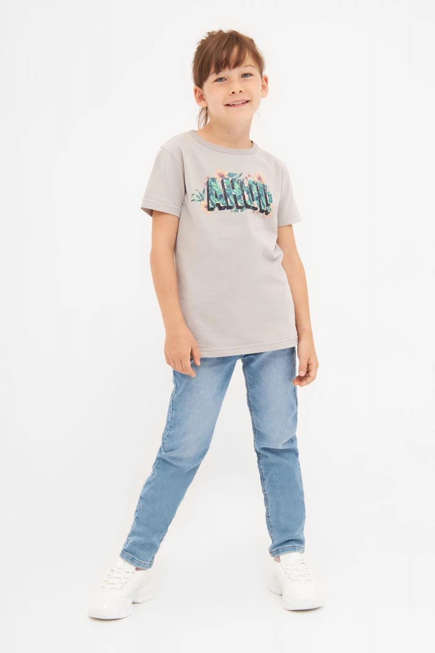 Derbe Hawahoi Kinder T-Shirt Ahoi Blumen Paloma Grau Nachhaltig