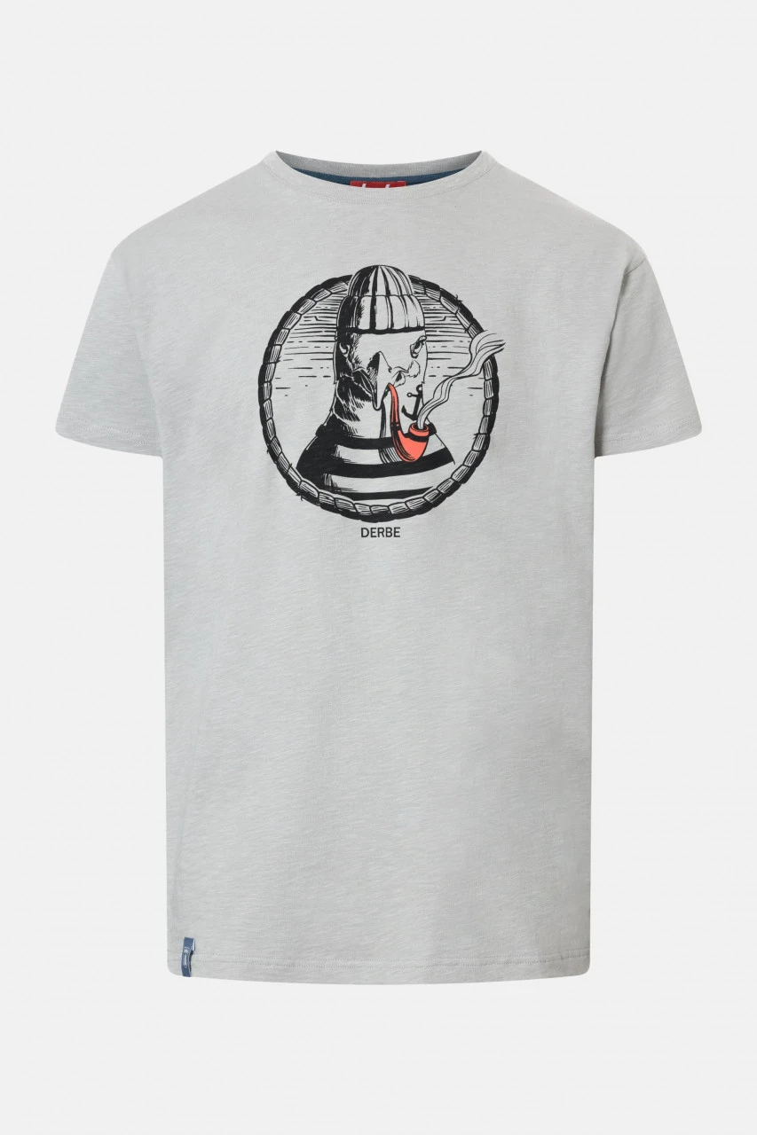 Derbe Shirt in Grau mit dem beliebten Möwenkopfprint und einer farblich hervorgehobenen Pfeife.Nachhaltigkeit: