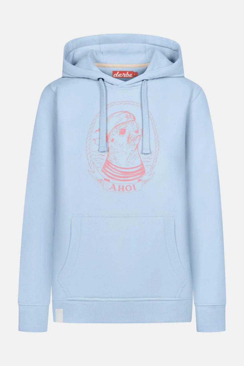 Derbe Matrosenrobbe Hoodie Damen Kapuzenpullover Hellblau