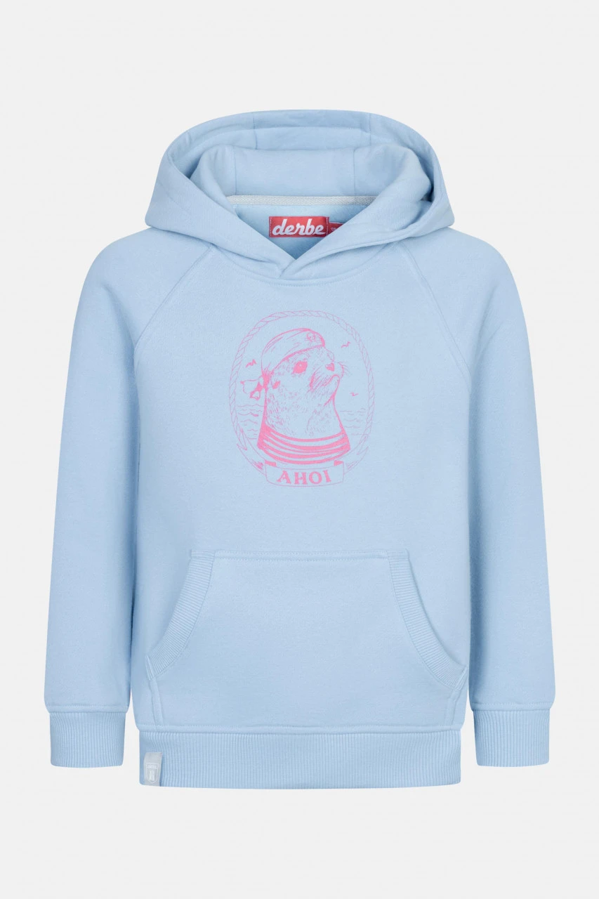 Derbe Matrosenrobbe Kinder Hoodie Kapuzenpullover Hell Blau Forget Me Not Nachhaltig