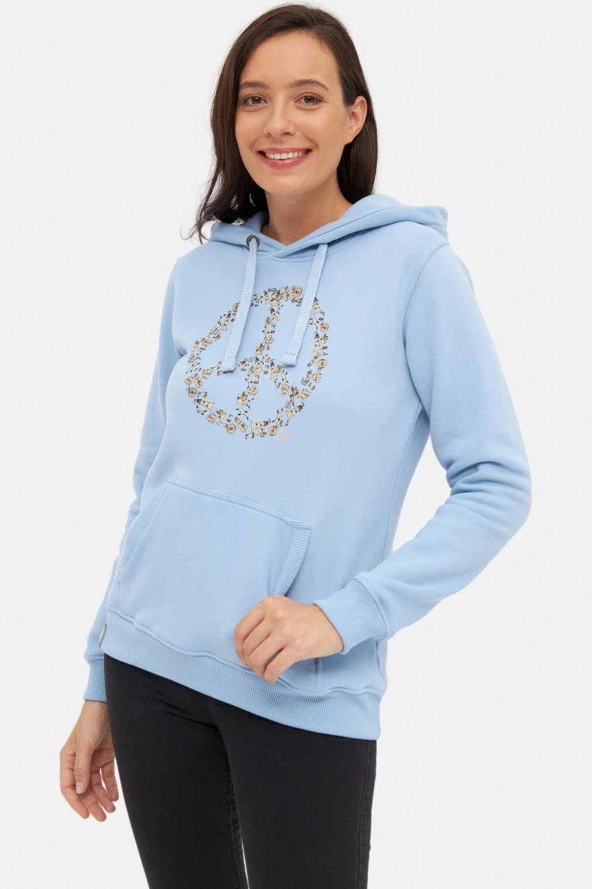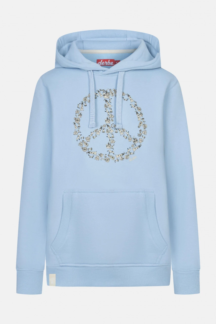 Derbe Peace Damen Hoodie Kapuzenpullover Hell Blau Forget Me Not Nachhaltig