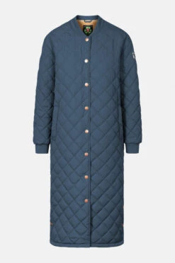 Langer gesteppter Mantel mit Teddyfell gefüttert. Der Quiltby wird Cozy! Passend für den Herbst-Winter 2022 hat derbe den Quiltby neu aufgelegt: Dunkles Blau trifft auf ein Karamell-farbenes Teddy-Futter.Eigenschaften: