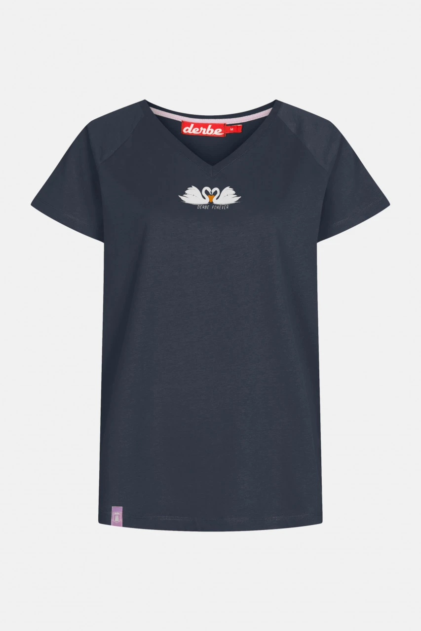 Derbe Schwanenliebe Damen Shirt V-Ausschnitt Navy Dunkelblau