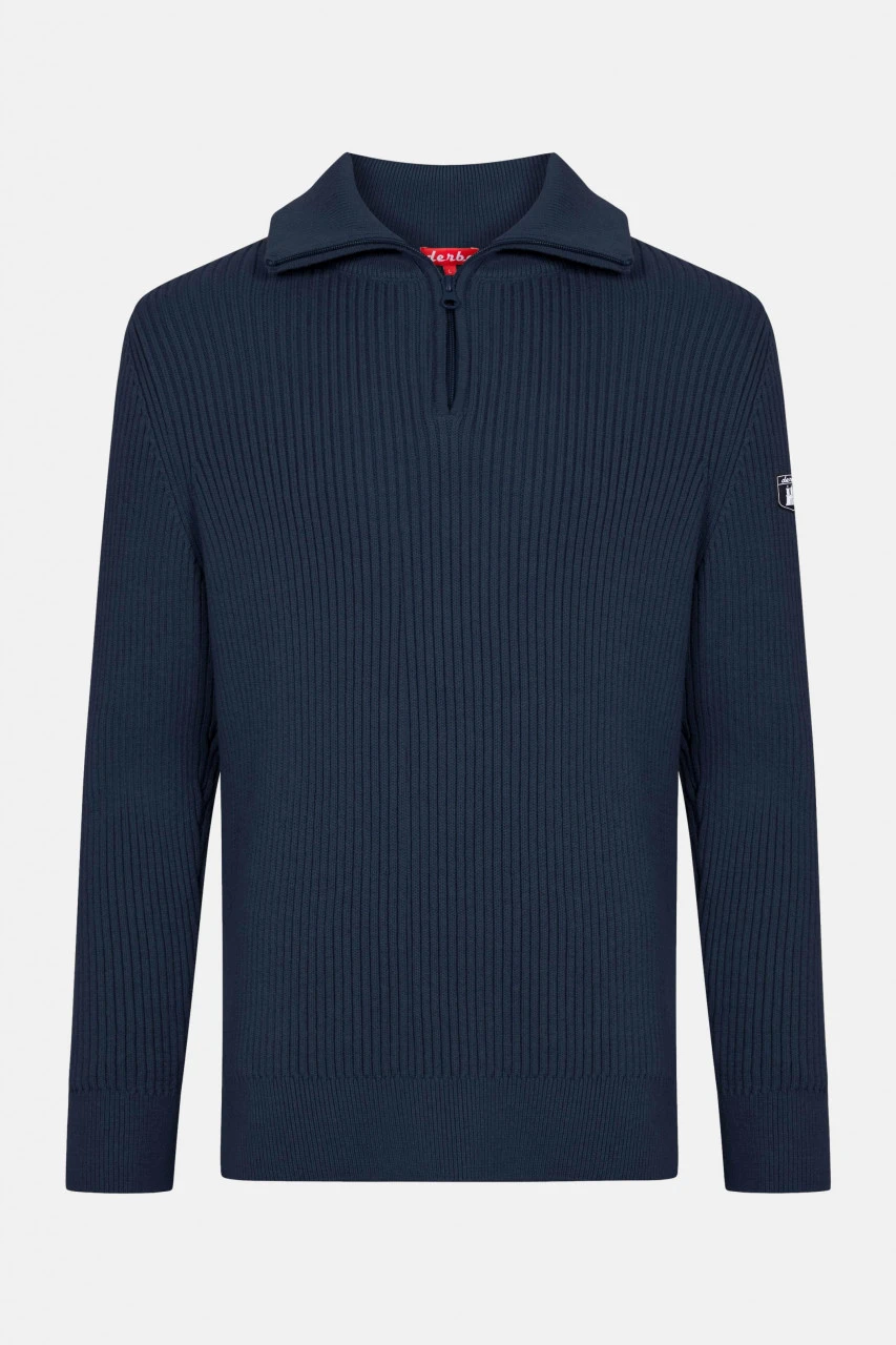 Derbe Troyer Gots Organic Herren Troyer Pullover Rippstrick Navy Dunkelblau