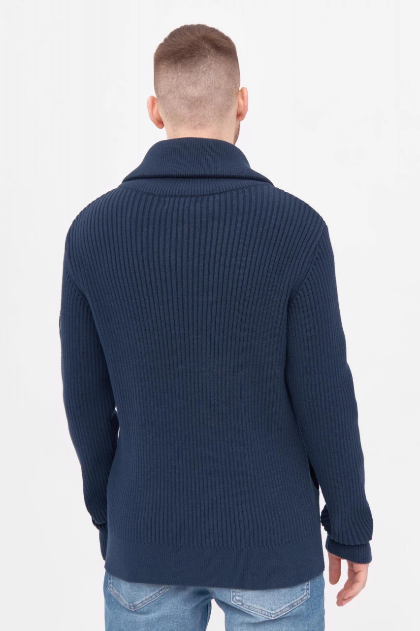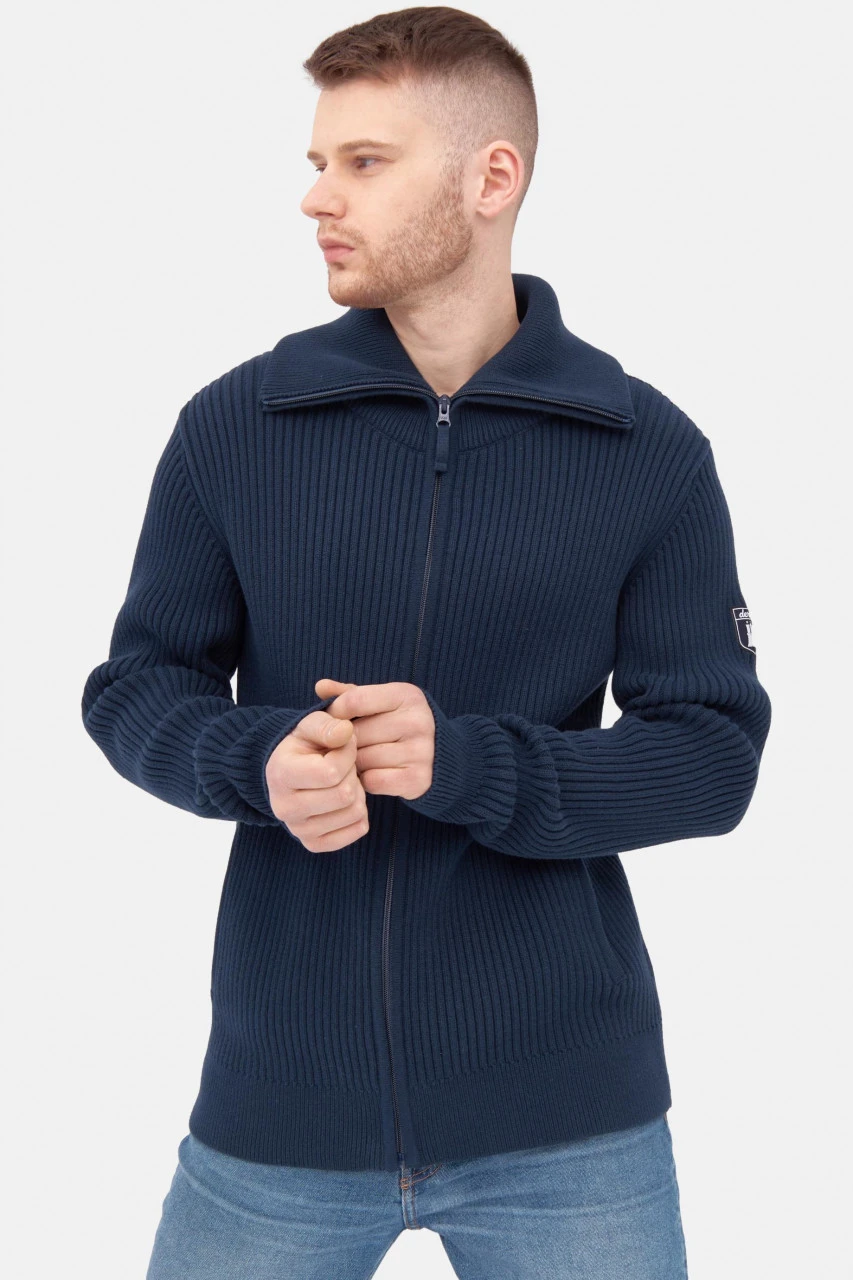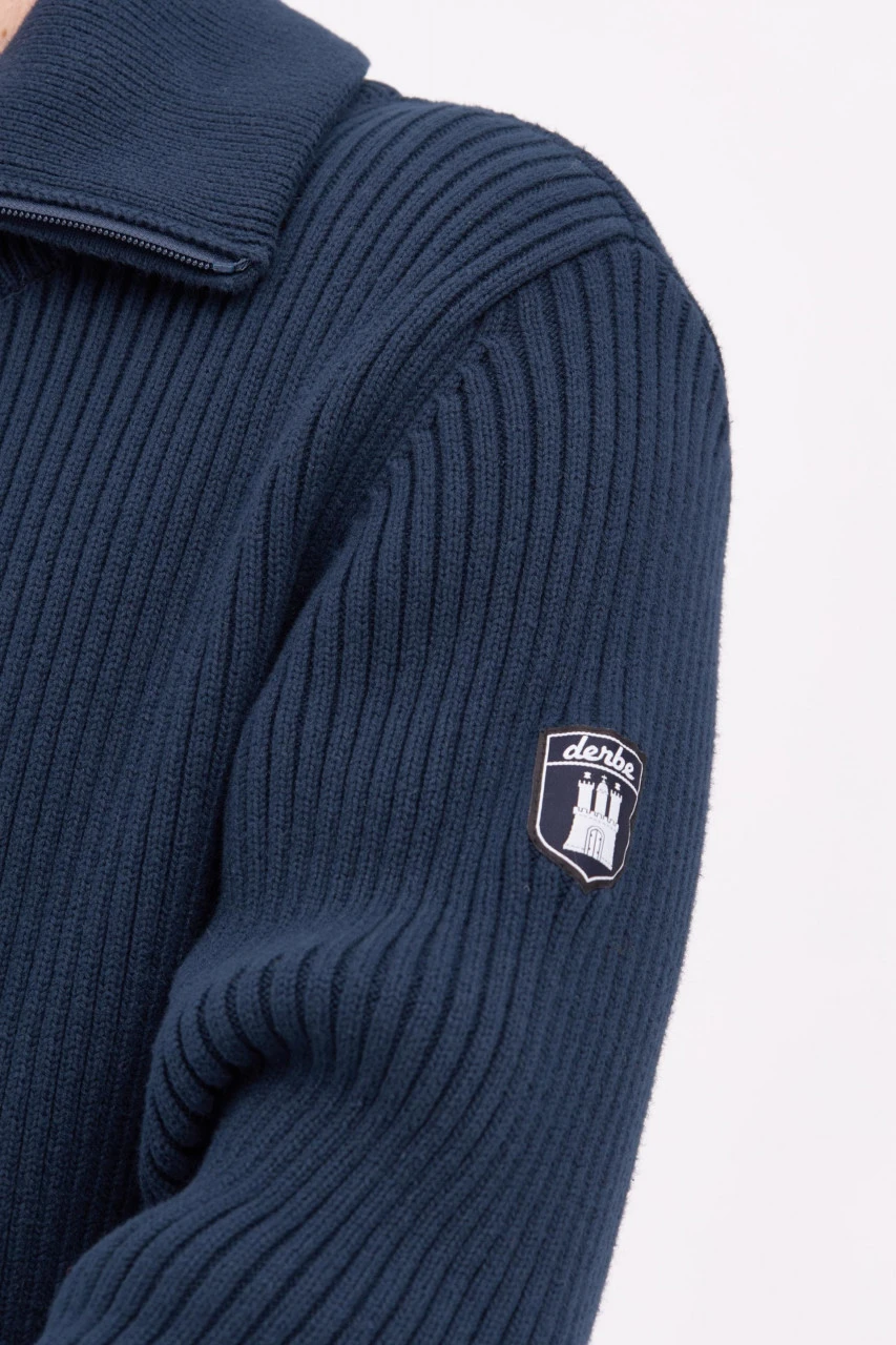 Derbe Troyzip Gots Organic Herren Troyer Strickjacke Rippstrick Navy Dunkelblau