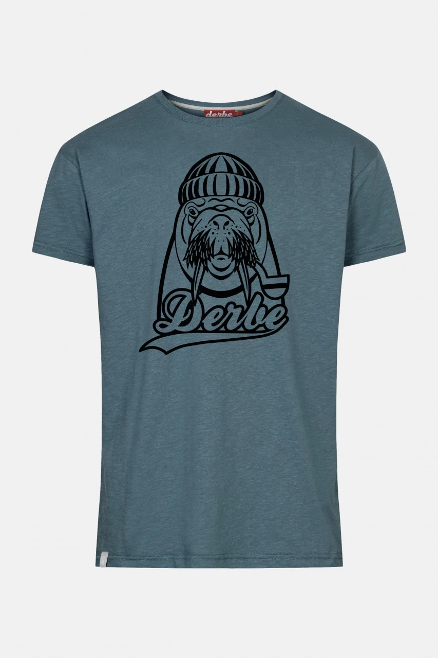 BlauesMotiv-Shirt von derbe mit einem großen Walross-Print für Herren.