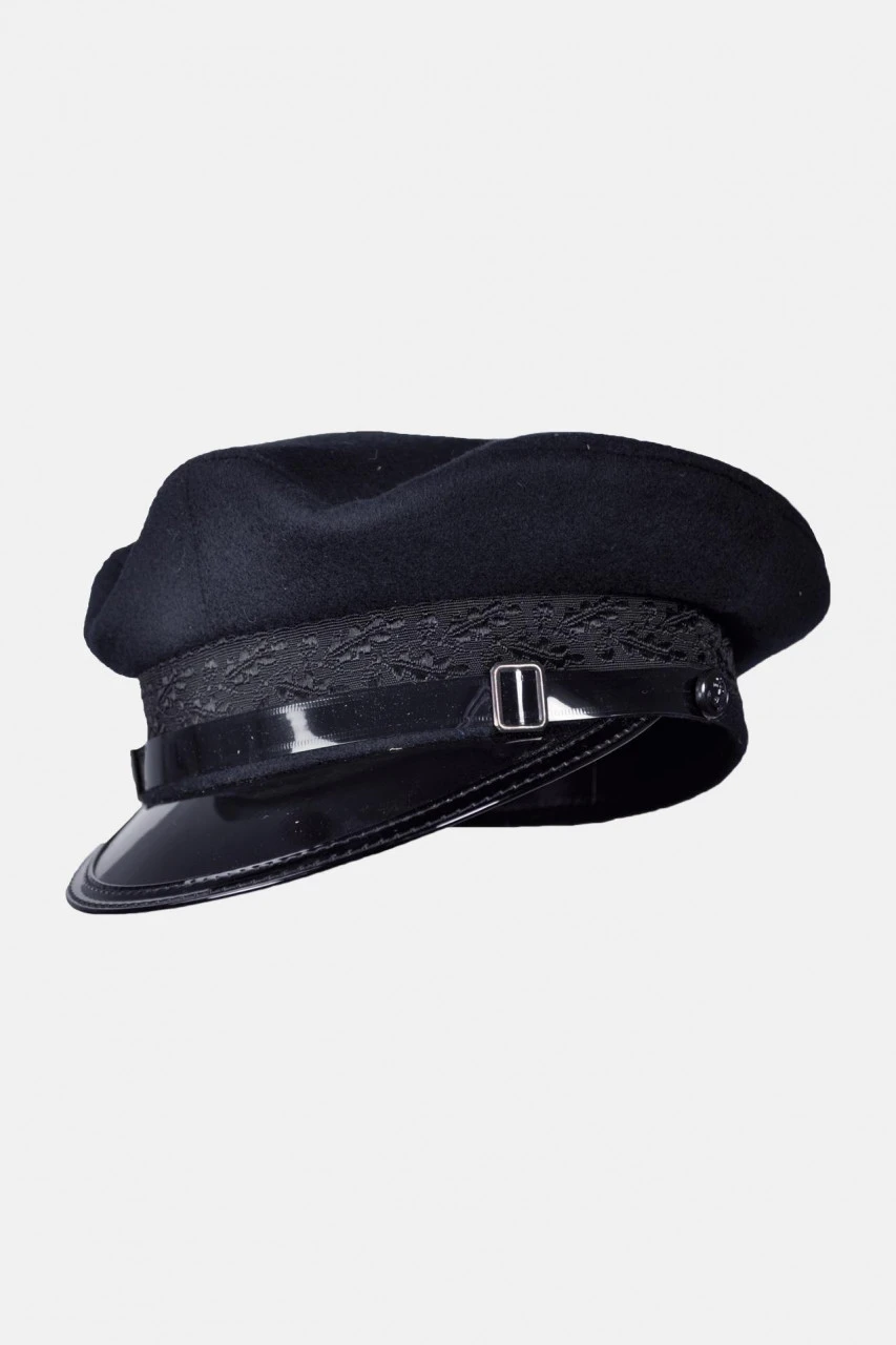 Blaue Fliegermütze aus Tuch mit Lackschirm.Futter: