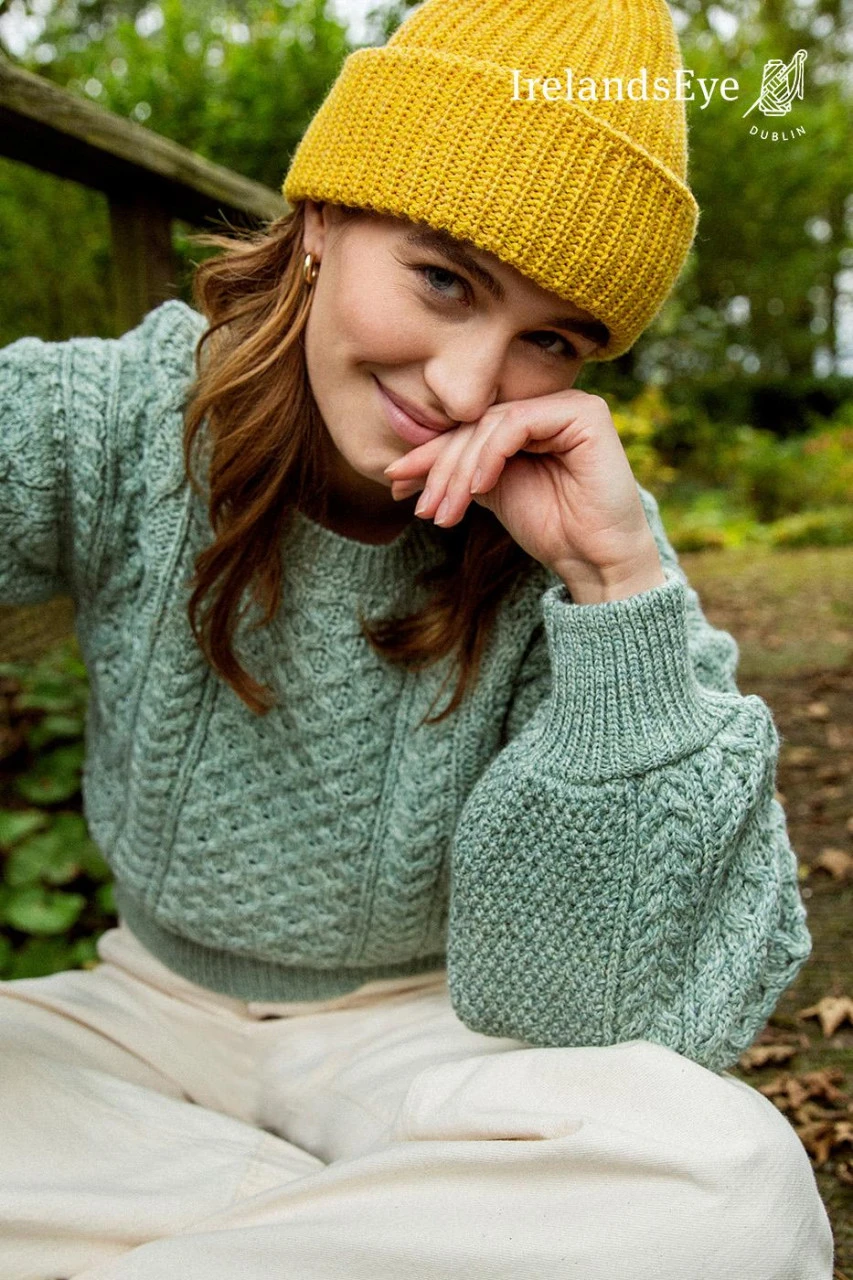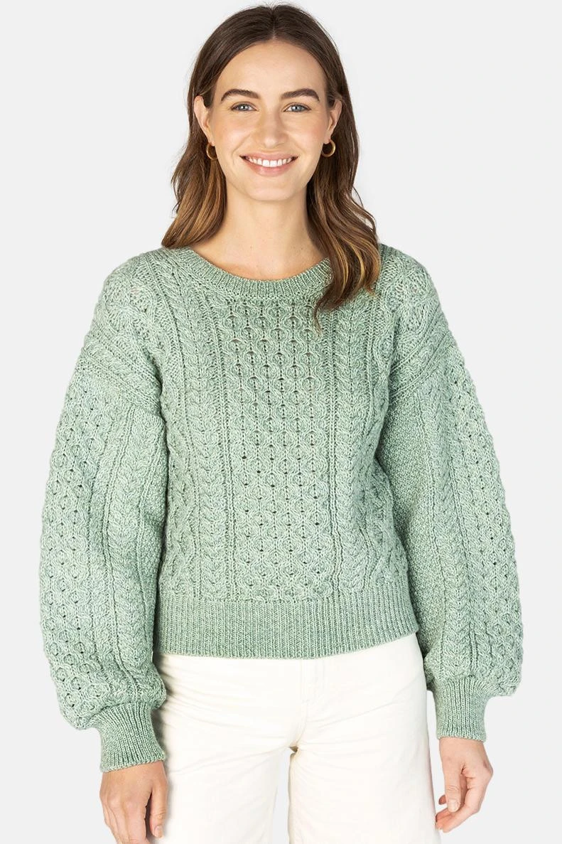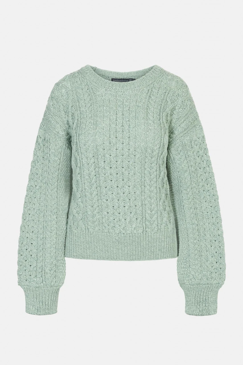 IrelandsEye Aran Honeysuckle Hell Grün Kurzer Damen Pullover Sage Marl