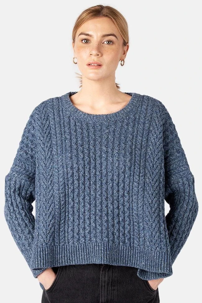 IrelandsEye Aran Sorrell Cropped Blau Damen Kurzer Pullover Seaspray