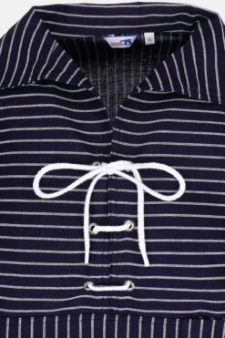 Bretonisches Kinder-Kapuzenshirt. Der schicke Kapuzi ist für Freizeit und Sport oder die etwas windigeren Tage an der See geeignet. Die hochangesetzte Kapuze und der Bundabschluss sind verstellbar mit Kordelzug, die unifarbenen Ärmelbündchen sind angenehm elastisch. Zwei Seitentaschen und hundertprozentige Baumwolle machen das Shirt zu einem richtigen Wohlfühlteil. Bis Größe 140 ersetzen aus Sicherheitsgründen ein elastischer Gummizug und ein Knopf mit Kordelschlaufe den Kordelzug in der Kapuze.