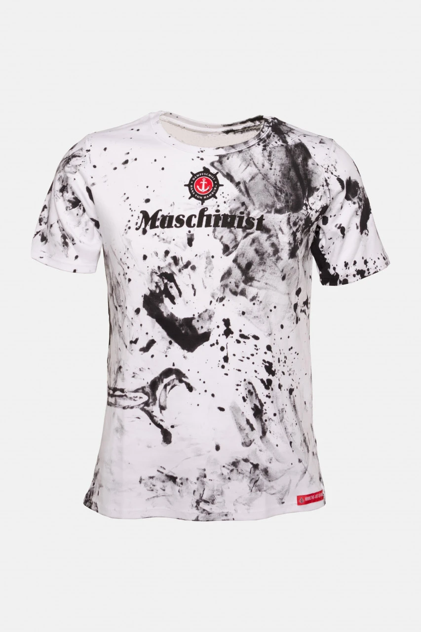 Ordentlich eingesudeltes T-Shirt für Herren aus 100% Baumwolle. Jedes Teil ist ein von Hand eingesudeltes Unikat und waschbeständig, da die Schmiere natürlich eigentlich Stoffarbe ist… In der Kollektion Maschinist von the Art-of-Hamburg, die speziell für die Maschinisten des Dampfschiffs St.Georg entwickelt wurde, finden sich Shirts für kleine und große Maschinisten. Farbe: weiß/vollgeschmiert, Abbildung ähnlich.Eigenschaften:
