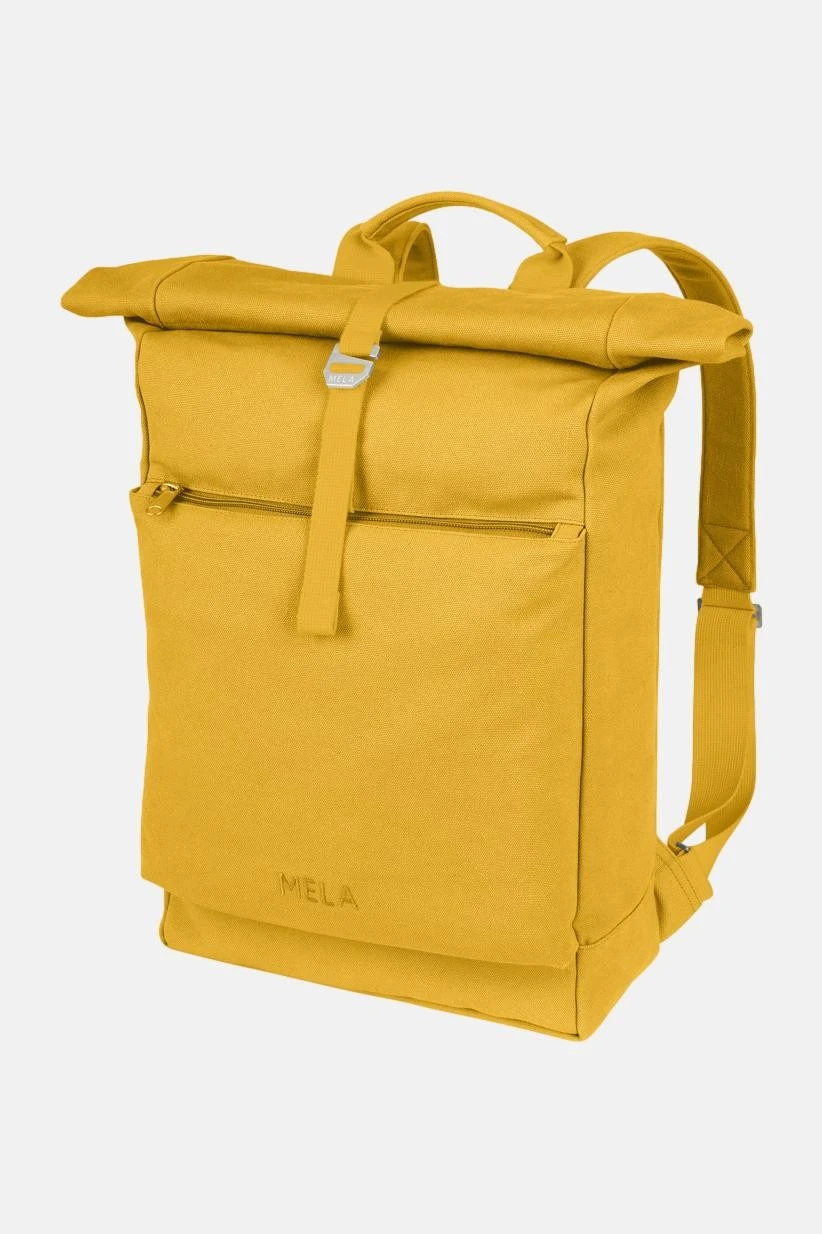 Stylischer, fair produzierter Rucksack von MELA mit Rolltop-Funktion, Außentasche und Laptopfach. Durch den Rolltop-Verschluss hat der Rucksack ein Fassungsvermögen von 15+5l.Eigenschaften: