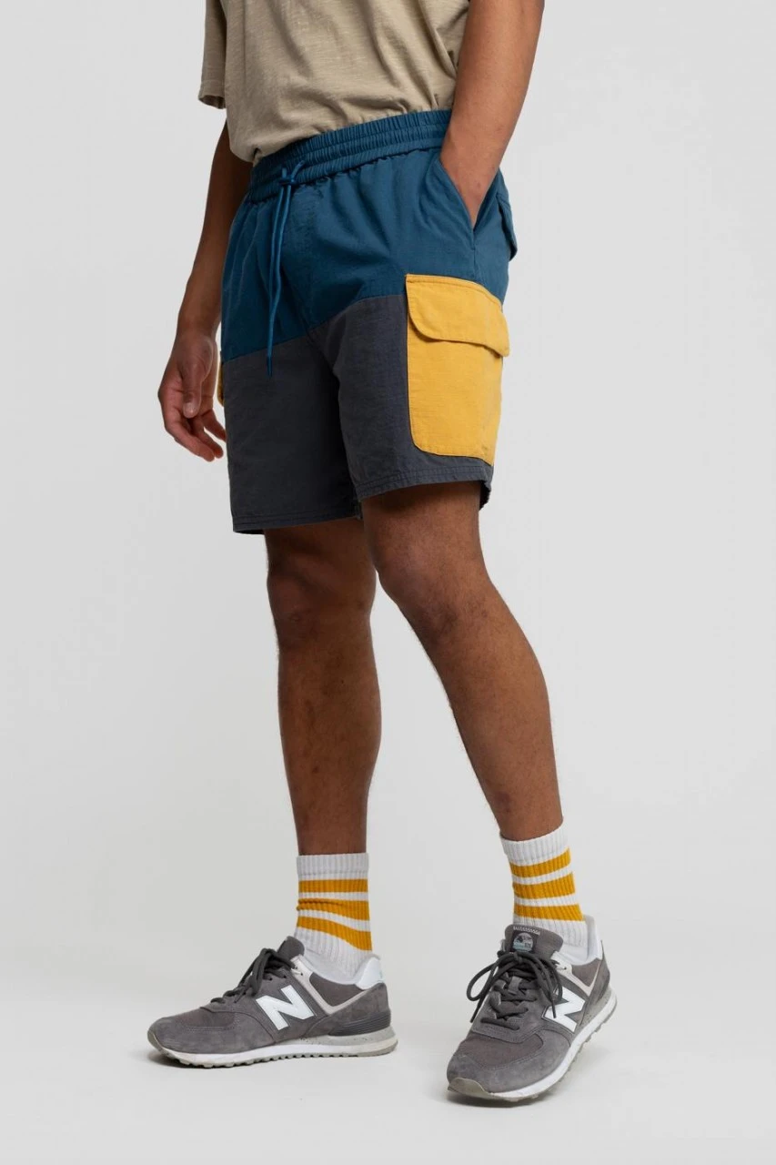 RVLT Revolution Blockes Casual Herren Shorts Petrol Grau Gelb