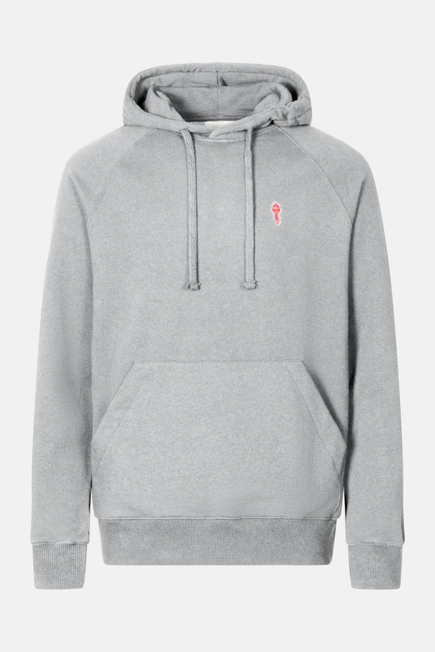 RVLT Revolution Herren Embroidery Hoodie Grey Mel Hellgrau Logo Stickerei