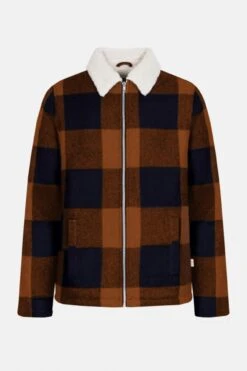 Lässige karierte Jacke von RVLT Revolution mit Teddy-Futter.