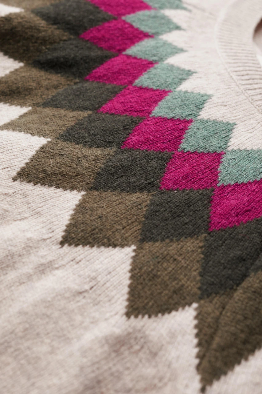 Eleganter Pullover mit weichem Merino-Wollanteil und stylischem skandinavischem Zickzackmuster.