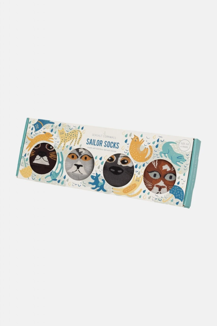 Socken (4 Paar) von Seasalt Cornwall mit Hunde-und Katzenprint in einer schicken Geschenkverpackung.Eigenschaften: