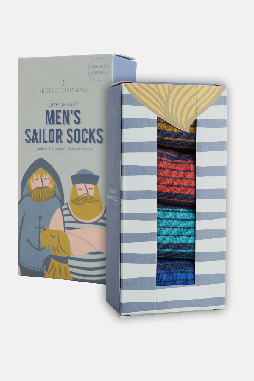 Vier Sockenpaare mit Streifen von Seasalt Cornwall in einer schönen Geschenkbox.