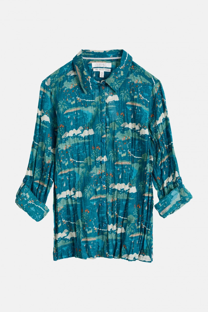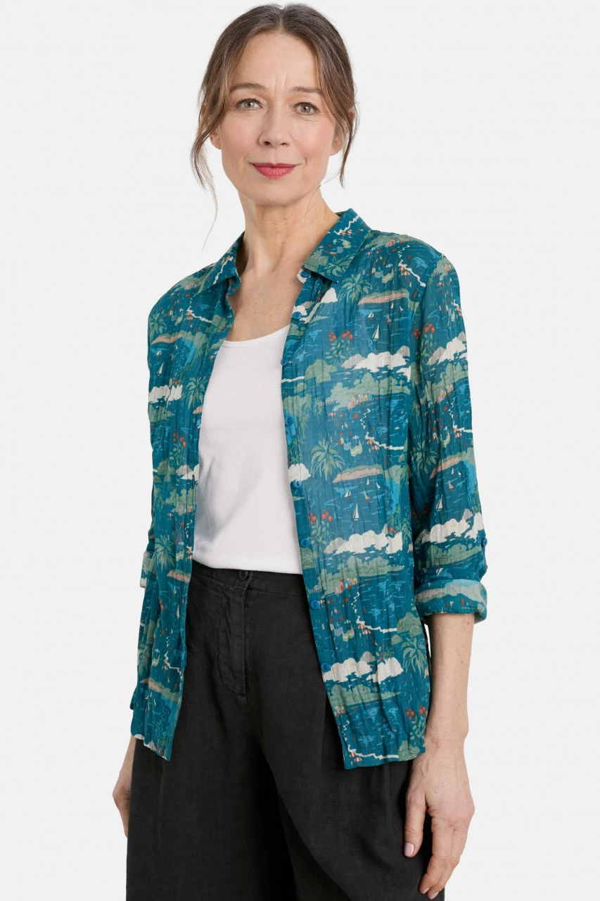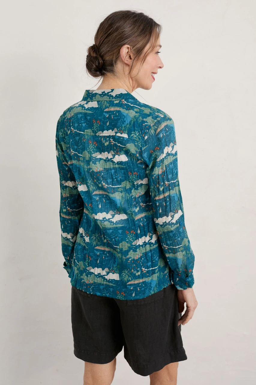 Schicke Bluse von Seasalt Cornwall mit Atlantik-Muster und leichter Knitter-Optik. Kann offen als Ersatz für eine Strickjacke oder geschlossen als Bluse getragen werden.Eigenschaften: