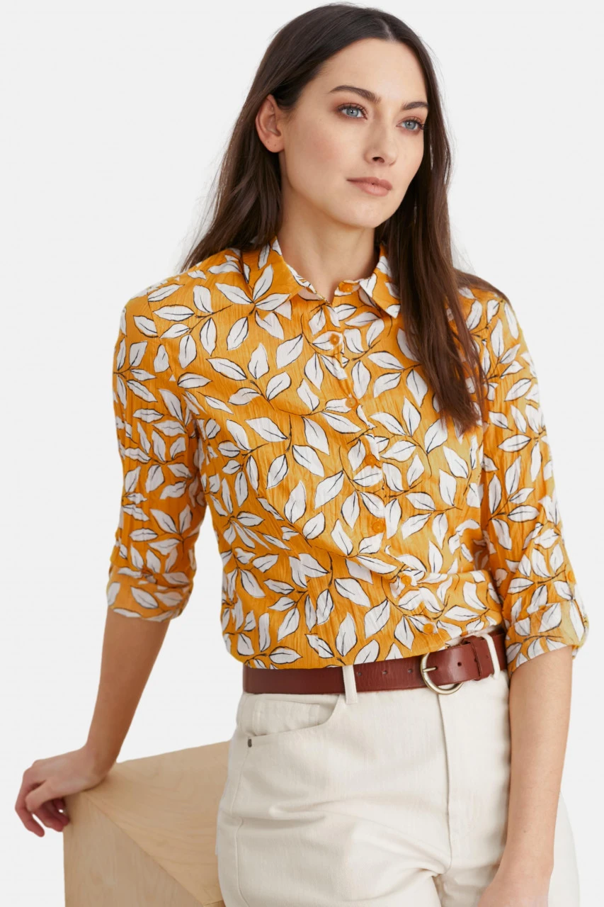 Schicke Bluse von Seasalt Cornwall in Orange mit Blätterprint und leichter Knitter-Optik.Eigenschaften: