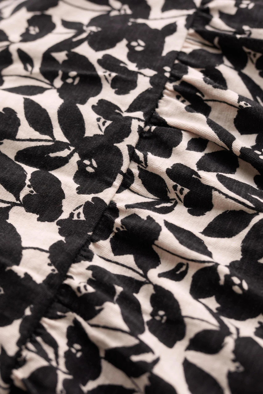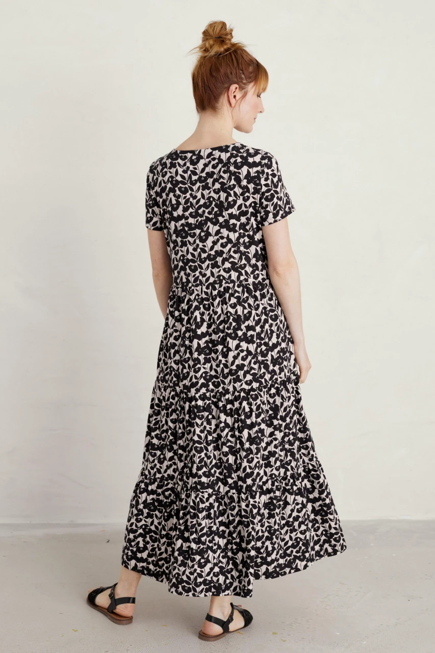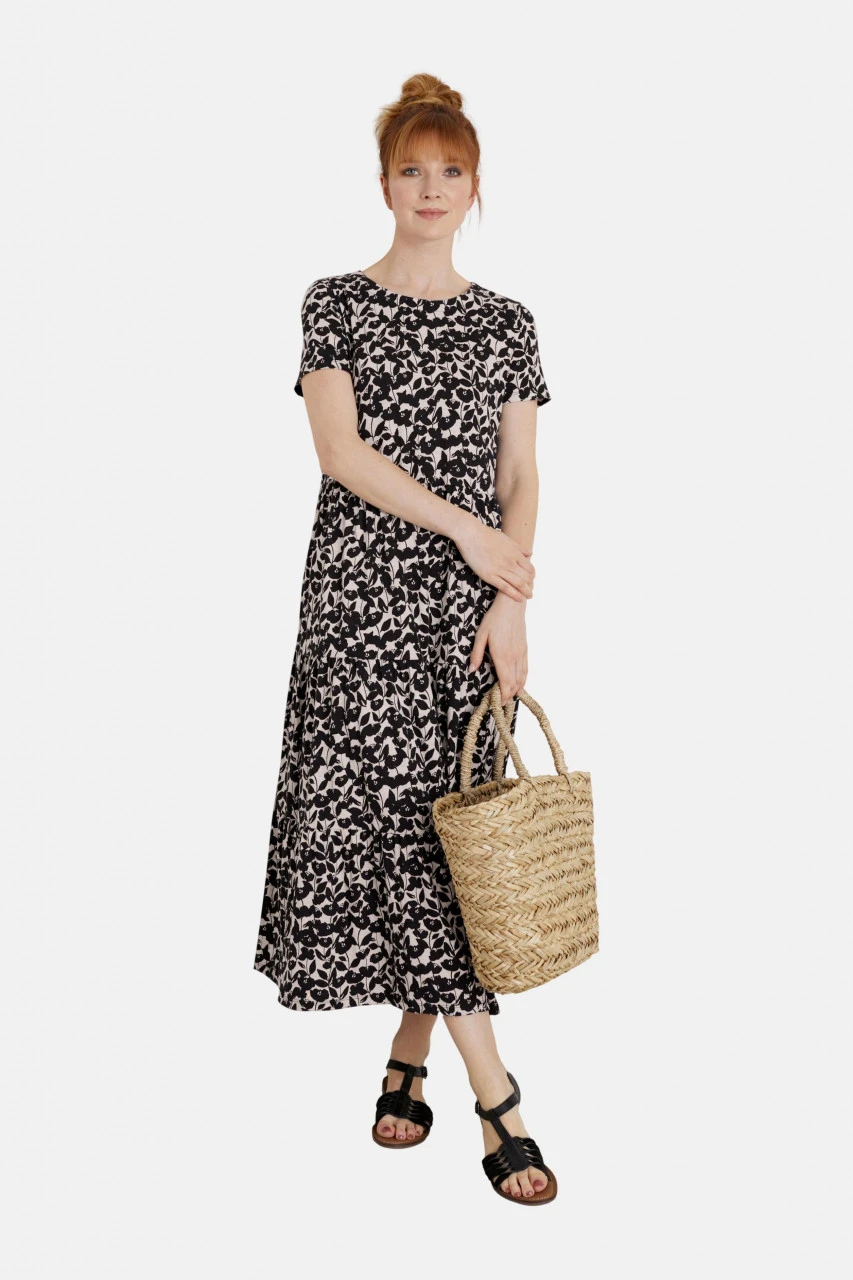 Leichtes Kurzarm-Sommerkleid von Seasalt Cornwall in Schwarz und Beige mit grafischem Blumenprint.Nachhaltigkeit: