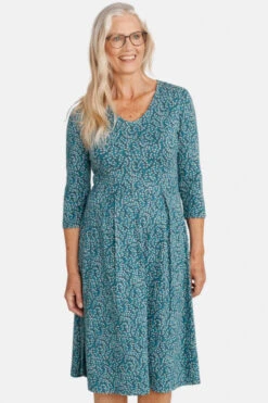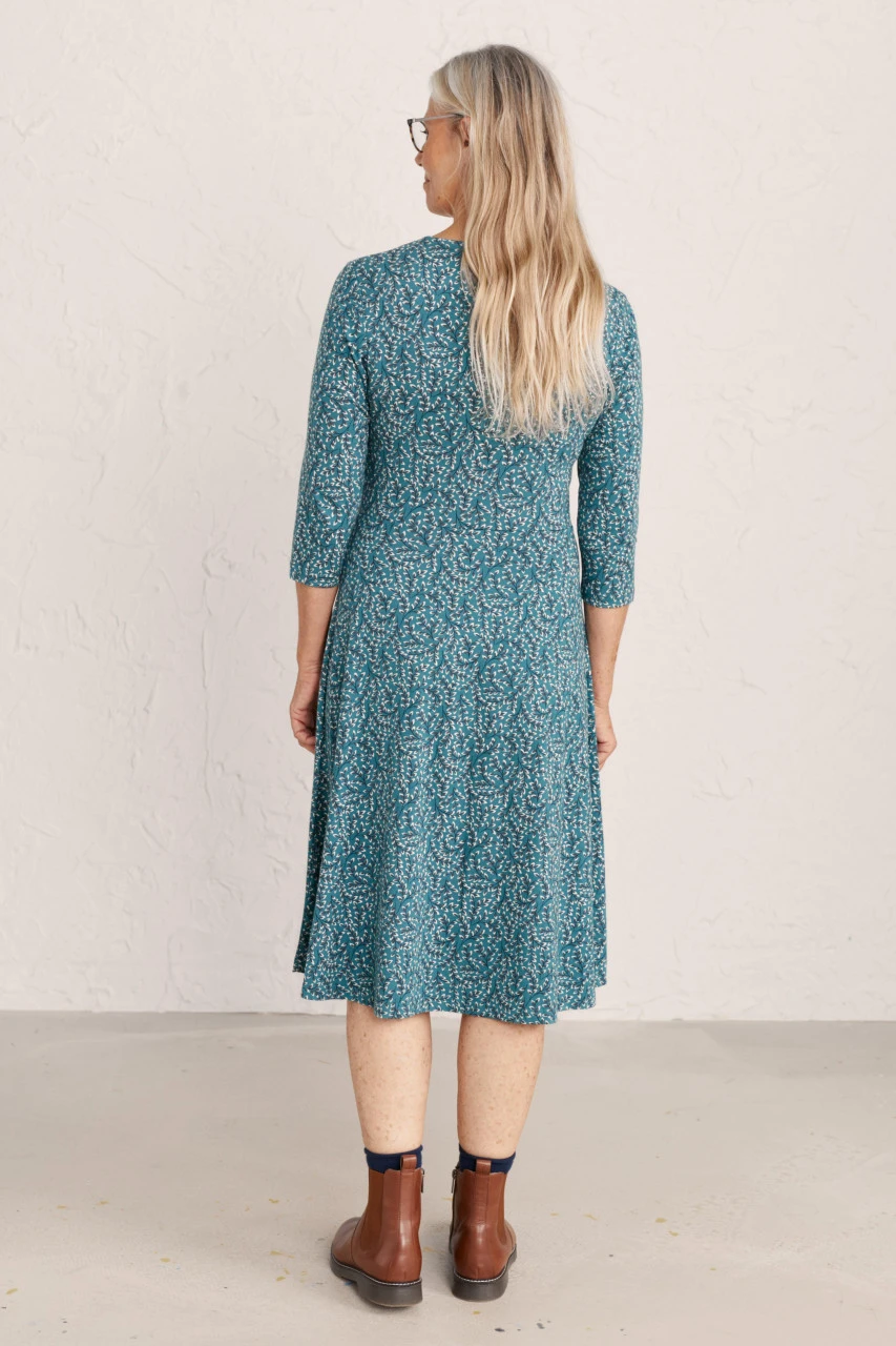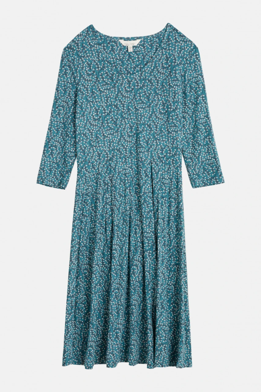 Seasalt Cornwall Pier View Dress Leaf Sprig Wreckage Damen Kleid Jersey Blätter Blau
