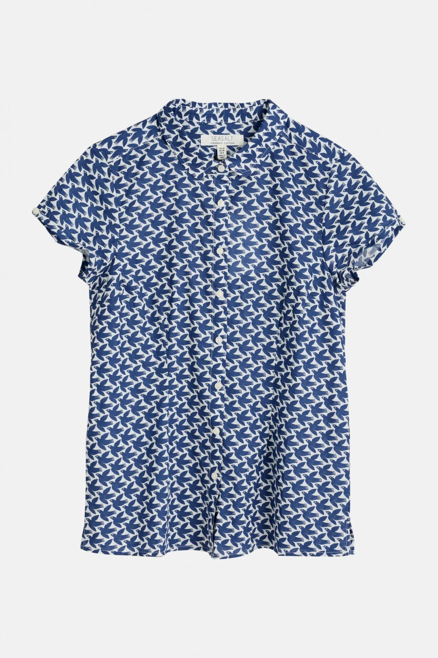 Seasalt Cornwall Rushmaker Bluse Blau Weiß Vögel