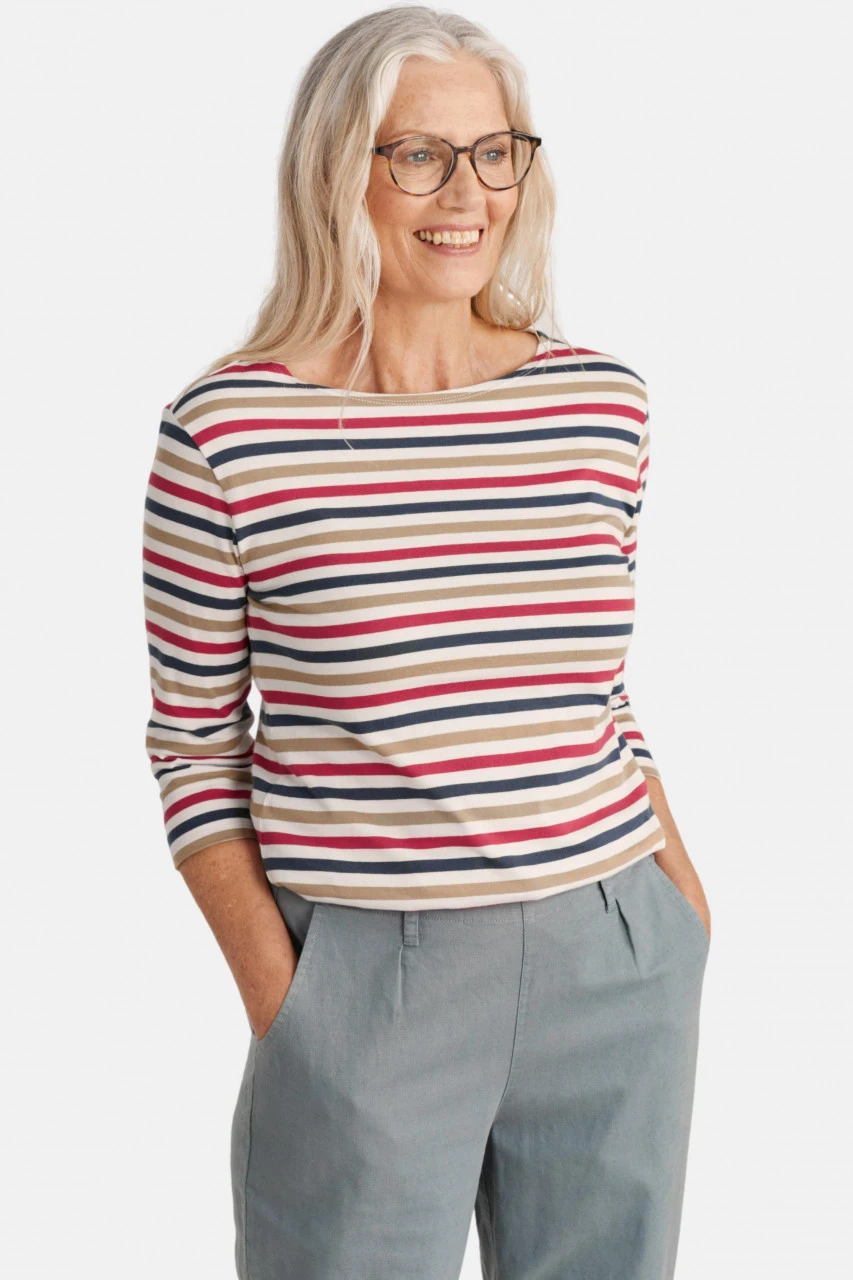 Gestreiftes 3/4-Arm-Shirt von Seasalt Cornwall mit U-Boot-Ausschnitt.Nachhaltigkeit: