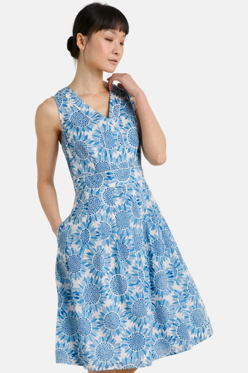 Seasalt Cornwall Villa Damen Kleid Sonnenblume Blau Weiß Vintage