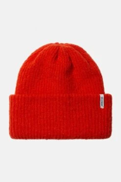 Weiche, rote Strickmütze in Rippenstrick-Optik für Damen.