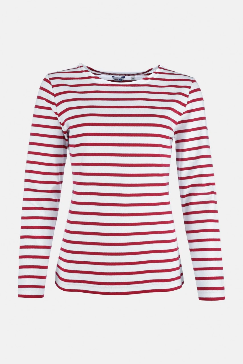 Streifenshirt Damen Langarm Weiß-Rot Gestreift Ringelshirt