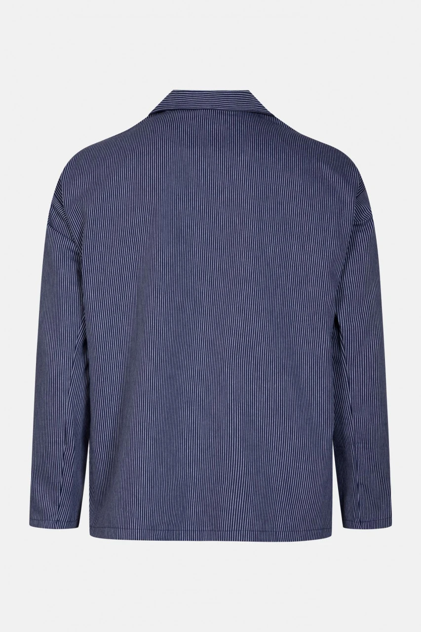 Takelhemd in leger-bequemer Schlupfform. Mit zwei praktischen seitlichen Schubtaschen, dekorativen Knopfriegeln am Ausschnitt und geknöpften Ärmelbündchen.